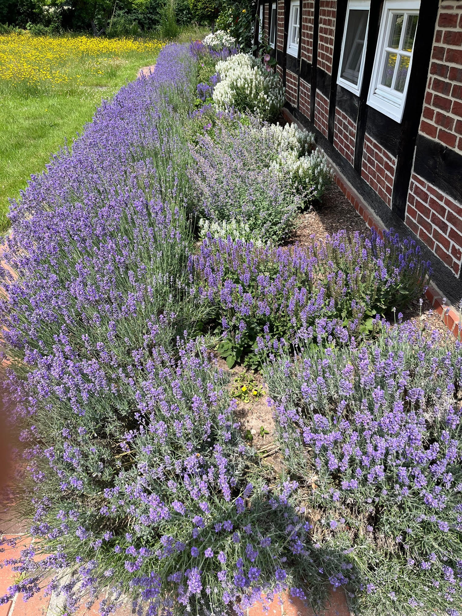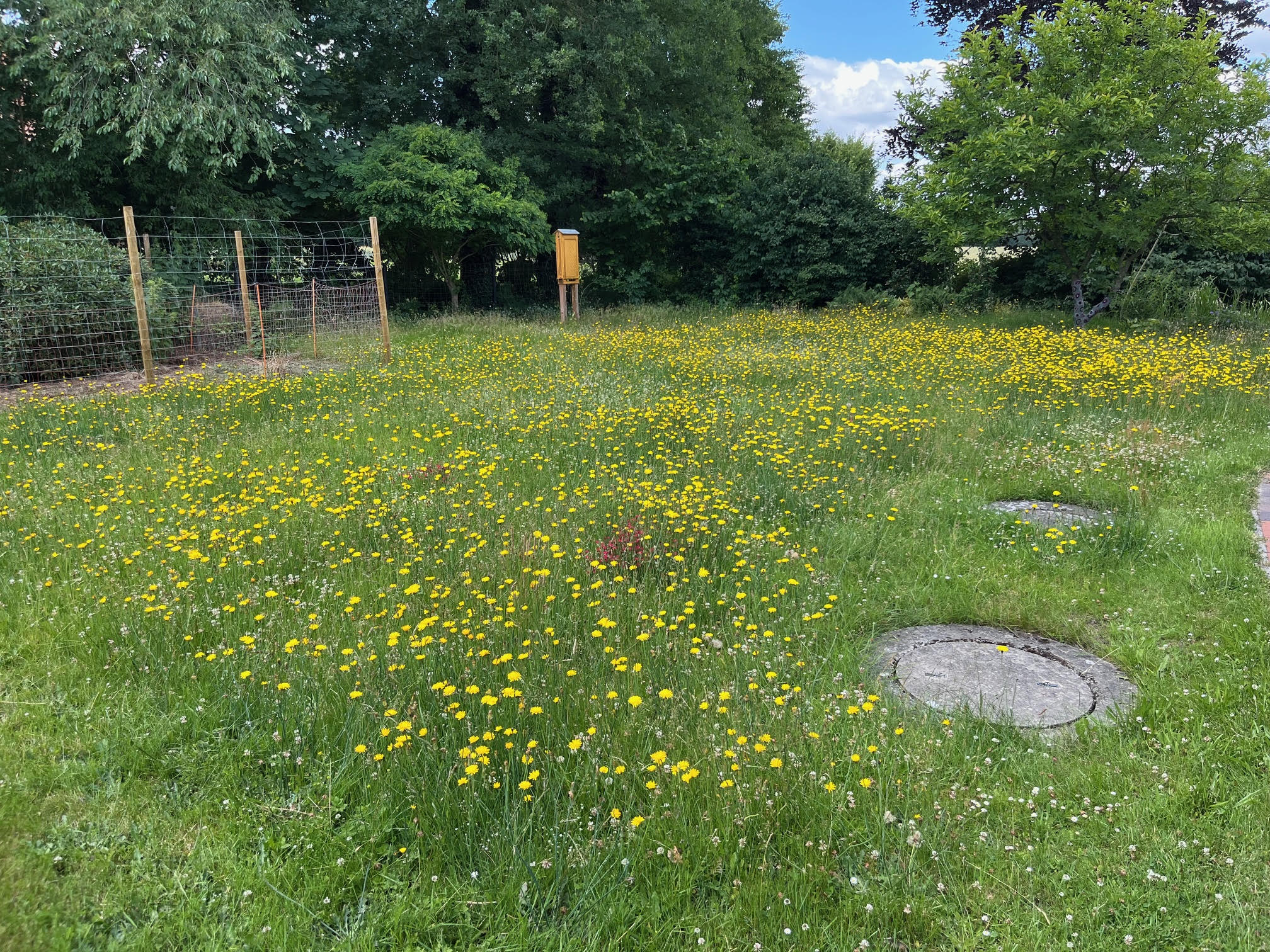 Unseren großen Garten gestalten wir bienenfreundlich, damit neben den Honigbienen auch Hummeln und Wildbienen Nahrung und Nistmöglichkeiten finden. Vom Frühling bis in den Spätsommer blühen bei uns verschiedene Sträucher, Stauden und Blumen, verschiedene Insektenhotels haben wir am Haus aufgestellt.